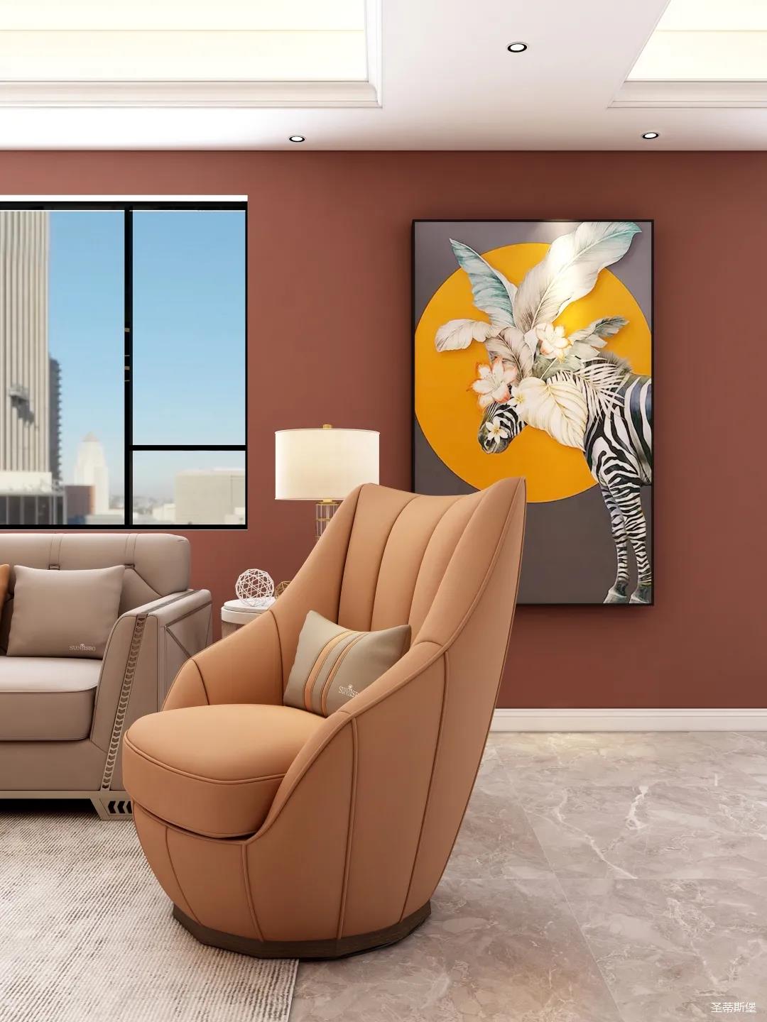 整体空间以高级内敛的暖色调为主,用沉着的暖灰与活跃橙作为点缀,给空间带来了灵动的气息,却不过分抢眼。质地柔软,回弹性极强的沙发、地毯,清新的绿植摆设,运用精美的金属元素添加了空间的品质感。