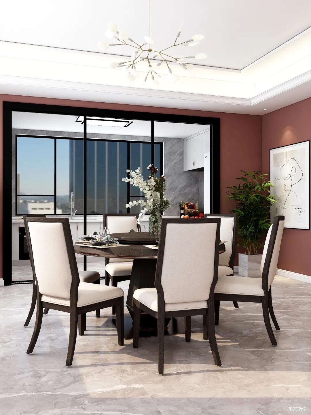 餐厅表姐更喜欢干净素雅的氛围,认为圆形餐桌不仅遵循传统用餐,也寓意团团圆圆,让围桌吃饭的氛围更温馨。因此餐厅以黑白灰为基底,用圆形餐桌布局餐厅,在有限的空间内,同时也注重功能性。