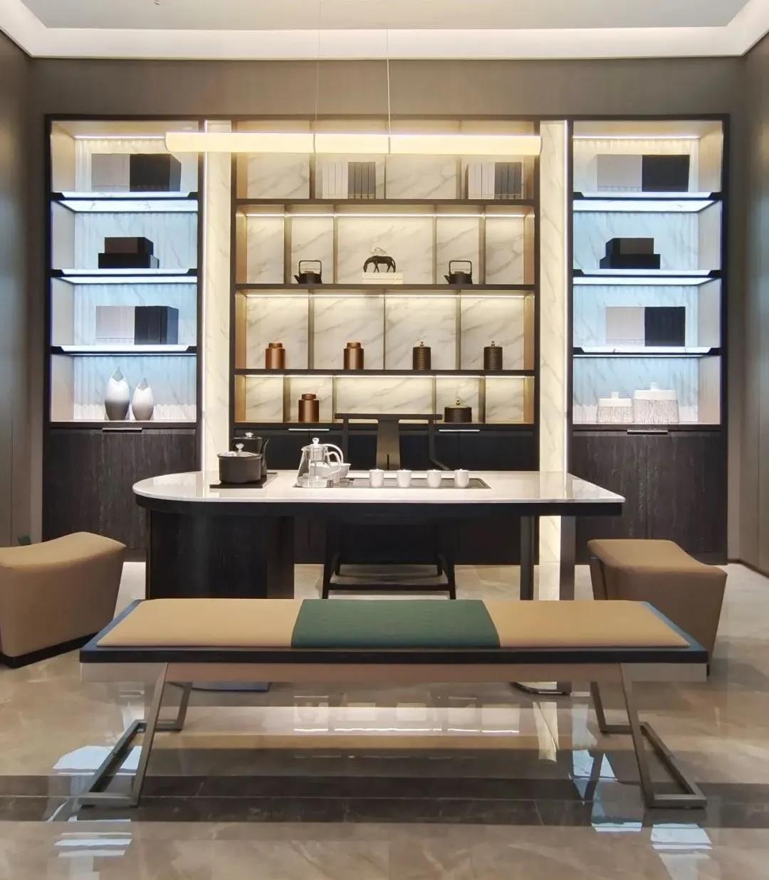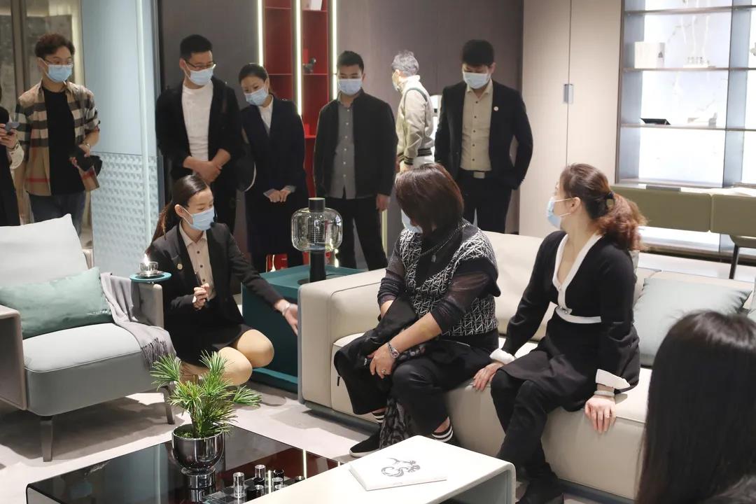 随后,嘉宾们迫不及待地移步至位于集团营销中心三楼的新品牌【西瑞】展厅。在潮味十足的展厅内,集团营销总经理陈玉伟先生围绕着新时代下家居行业的发展趋势,对西瑞产品架构和矩阵进行了深度解析,并为嘉宾们全方位介绍了西瑞的产品定位,材质工艺,以及“整装定制·全案设计”的发展方向。全新的设计视角、个性十足的产品设计引来了现场嘉宾们的驻足品鉴。系列产品的“时尚新锐”、“潮流大气”、“高级质感”、以及极具新青年格调的定制空间赢得了现场嘉宾的由衷赞誉和高度认可。