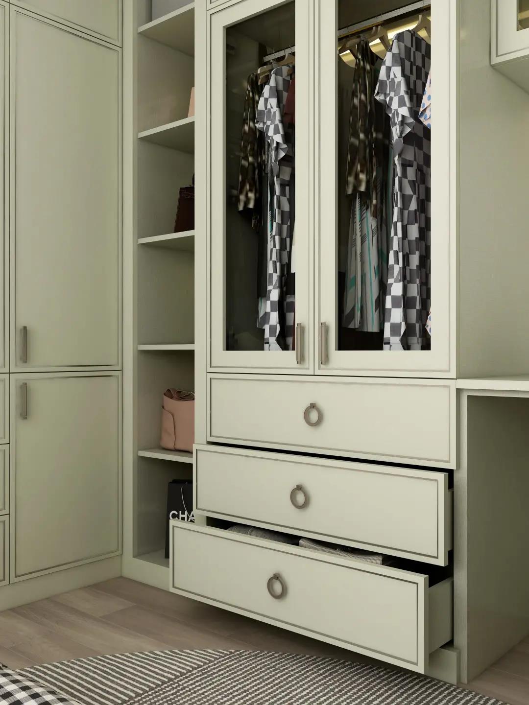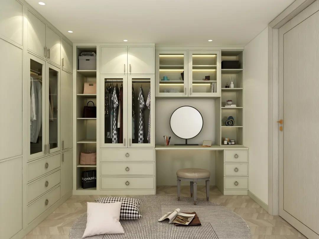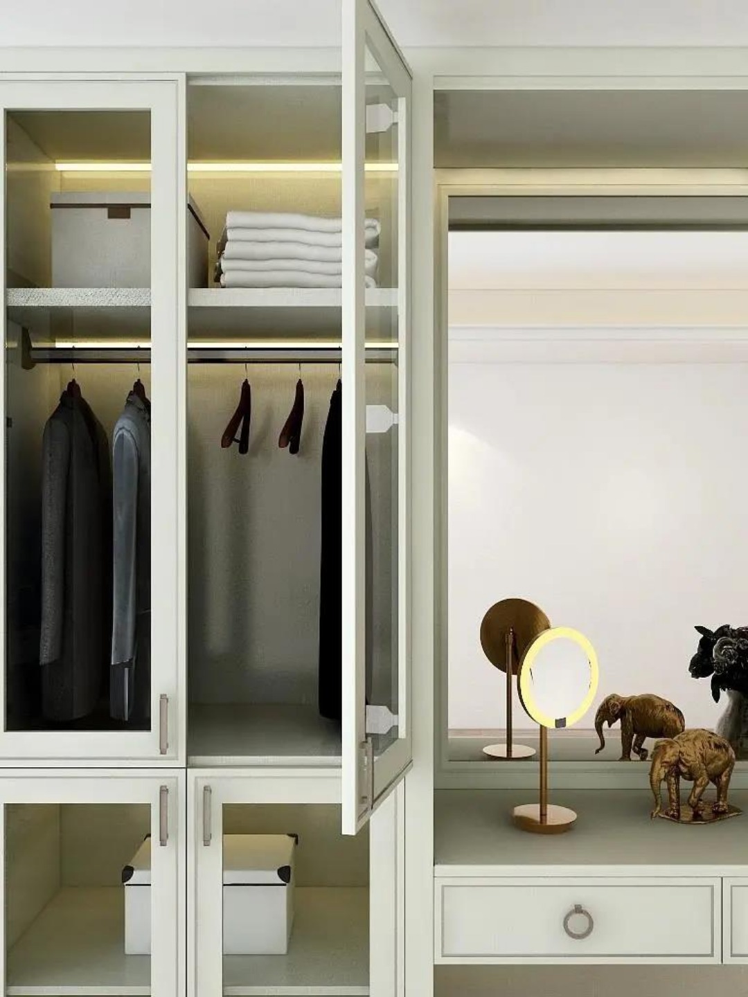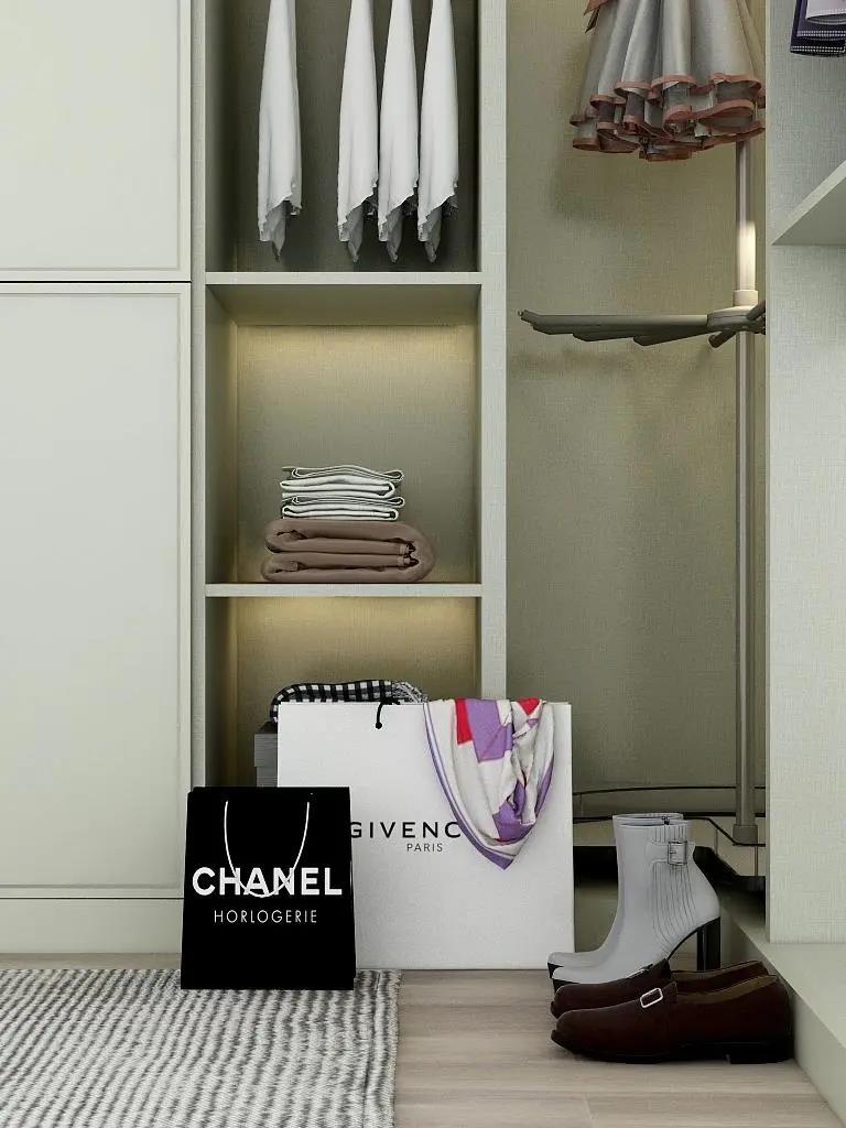 左侧设计为一体式定制玄关柜,保证了户主出入收纳,